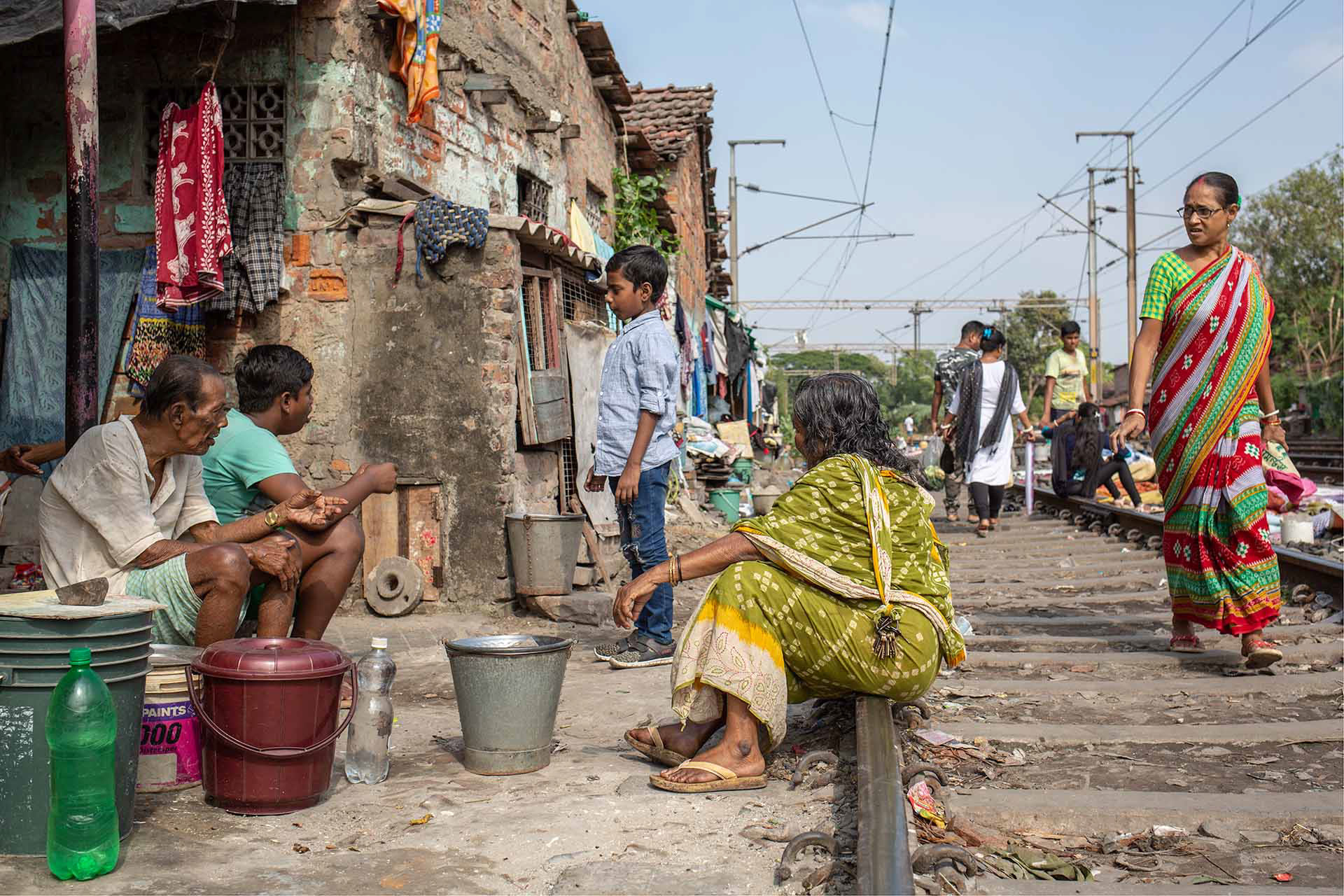 A thriving community of people of all ages, living in abandoned and condemned buildings or makeshift shacks, has grown up around the railway tracks in Kolkata, India. I wanted to show the resilience, fortitude, resourcefulness and – apparently – contented acceptance of their conditions by these people as they go about their daily lives barely interrupted by the trains passing at occasional intervals.